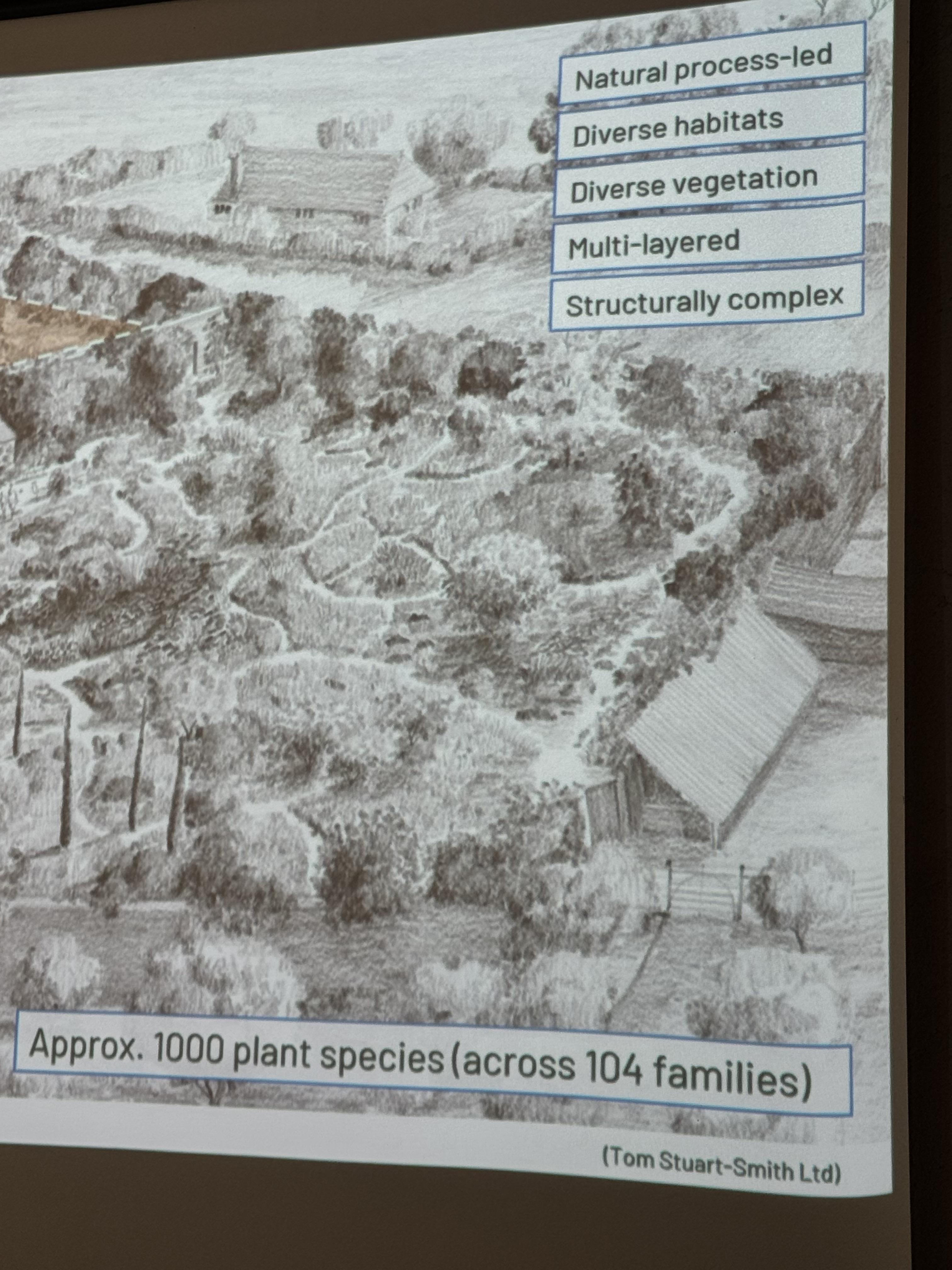 トム・スチュワート・スミス氏の美しいスケッチのベースにネップの庭の土壌環境の設計も図式化して伝えて。